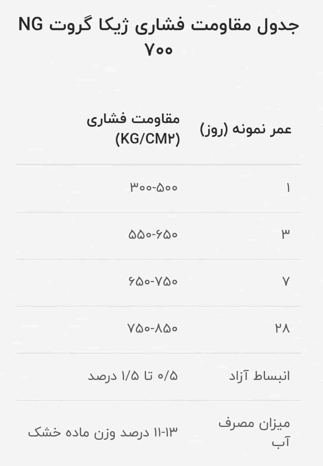 - از تماس این گروت با آلومینیوم جلوگیری نمایید.