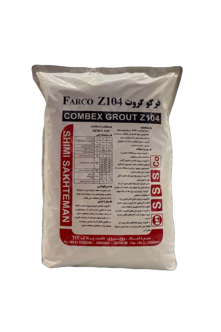 - فرکو گروت FARCOGROUT Z104 یک گروت آماده به مصرف بر پایه پودرهای مخصوص، مواد افزودنی مختلف ، سیمان و با دانه بندی شن تا 5 میلیمتر است. این محصول برای گروت ریزی ضخامت 4 تا 12 سانتیمتر طراحی گردیده است.