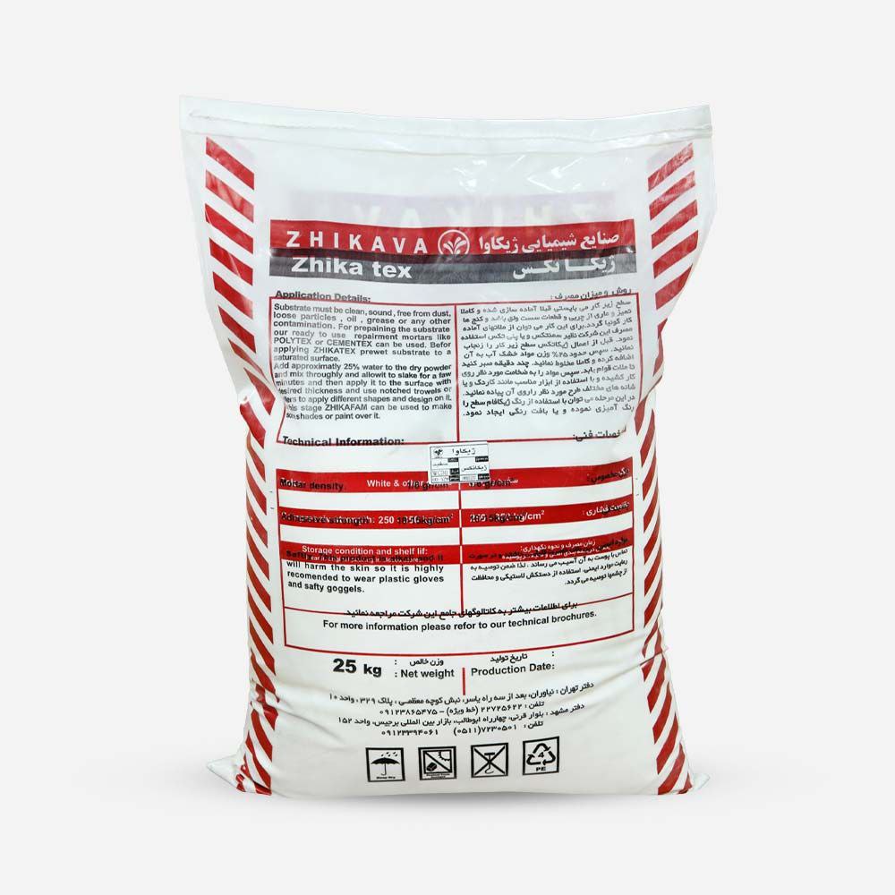 ژیکاتکس یک پوشرنگ پایه سیمانی حاوي چند نوع مواد کمکی و رزین، جهت ایجاد چسبندگی، کارپذیری و بالا بردن دوام و مقاومت آن در مقابل عوامل جوی می باشد. این پوشرنگ در رنگ های مختلف و در انواع پاششی و ماله ای تولید شده و می توان با استفاده از انواع کاردك، غلطک، شابلون، استمپ و سایر ابزار نقاشی، صدها طرح و رنگ مختلف را اجرا نمود. پس از اجرا به سختی بتن شده و کاملا ضدآب است.